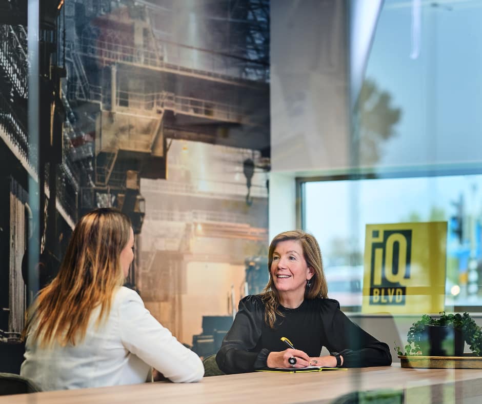 ‘Het was de bedoeling om een concrete agenda op te stellen om samen met studenten, bedrijven en eventueel met knowhow van buiten aan de slag te gaan’, zegt Mireille. Iedere twee maanden komen de deelnemers en het team van IQ BLVD bij elkaar bij een van de aangesloten bedrijven. ‘We bespreken dan waar we op verschillende onderwerpen zijn in de uitvoering, leggen dilemma’s voor of pitchen nieuwe ideeën.’